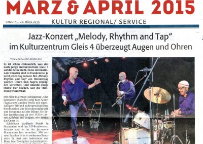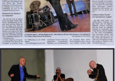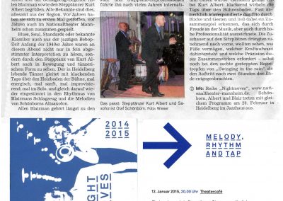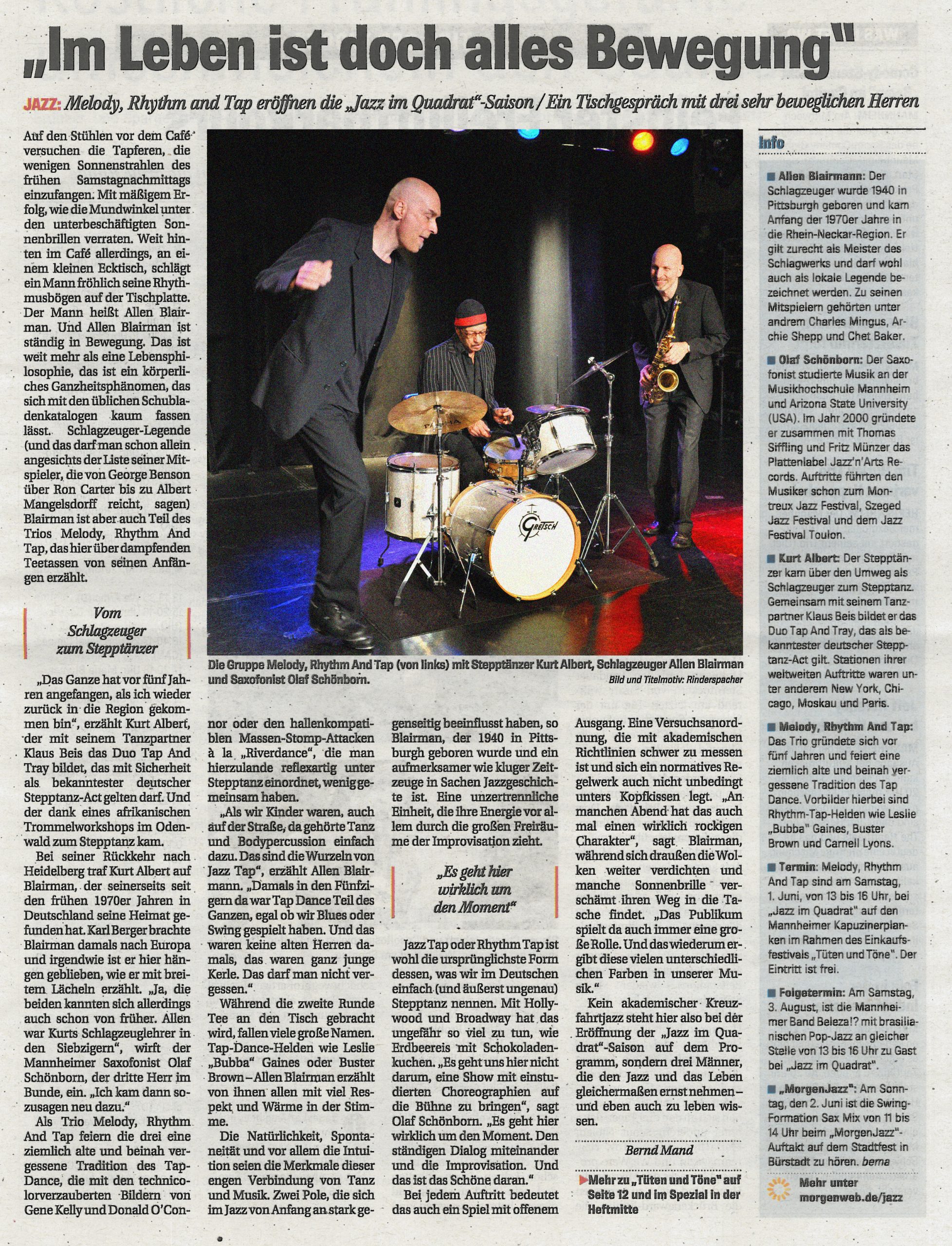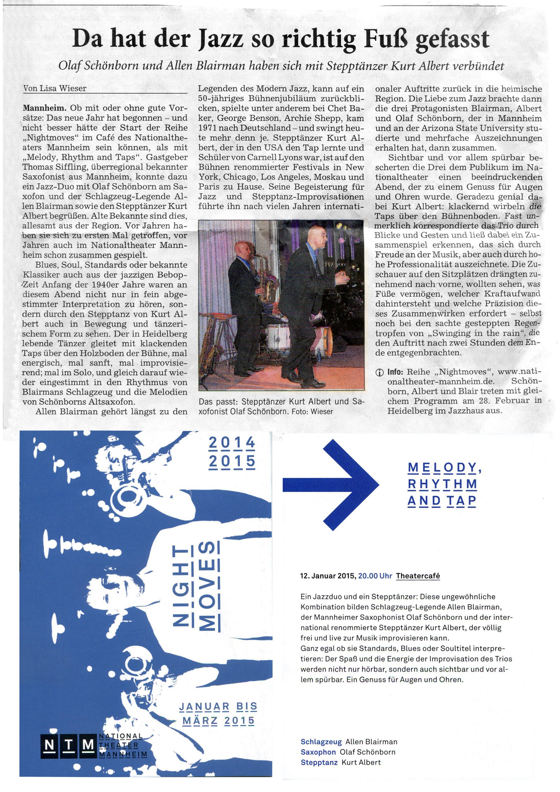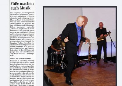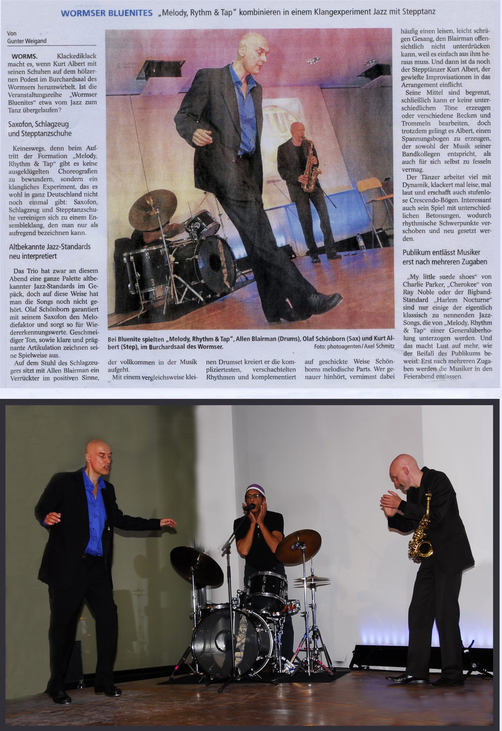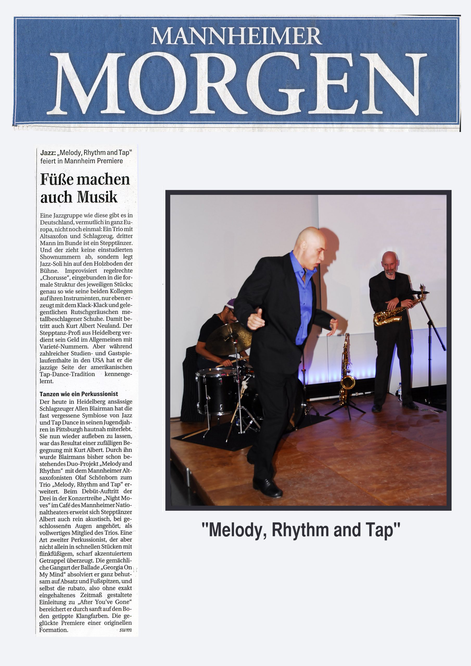 FAZ Rezension Trio steppte & swingte wie der Teufel Toulon Jazz Festival Night Moves Chicago Tap&Tray Melody Rhythm & Tap Enjoy Jazz Festival Frankental Mannheimer Morgen Liège / Belgien Tap Tray & The Fool Blue Nights Worms Moskau Tap Festival